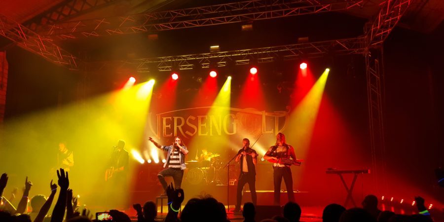 Zu der Musik von VERSENGOLD ließ sich auch an diesem Abend bei bestem Sound kräftig feiern, jedoch sorgte ein besinnlicher Moment für den zwischenzeitlichen Höhepunkt. Normalerweise hätten VERSENGOLD in der Mitte des Konzertes den Titel “Nebelfee“ gespielt, in Dresden hingegen aus einem guten Grund darauf verzichtet. Ein Fan hatte vorab die Band kontaktiert und seinen persönlichen Bezug zum Song “Wolken“ geschildert, verbunden mit der Bitte, diesen doch in Dresden live zu spielen. Ihm wurde dann mitgeteilt, dass seine Geschichte die Band zwar sehr bewege, die Setlist aber feststehe und nicht verändert werden könne. Denkste. Eben jener Fan staunte nicht schlecht, als ihm zu Ehren der Gänsehaut-Song “Wolken“ doch erklang. Das komplette Publikum war ergriffen und VERSENGOLD freuten sich sichtlich aufgrund ihrer geglückten Überraschung.
