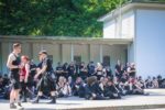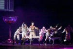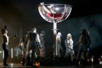 In der Arena angekommen wurde schnell deutlich, dass Inszenierungen von Gregor Seyffert alles andere als nach Schema F ablaufen. Im Innenraum rund um die langgezogene Bühne standen 600 Papphocker als spartanische Sitzgelegenheiten. Diese Lösung hatte allerdings nichts mit Sparmaßnahmen oder Sadismus zu tun, sondern ganz pragmatische Gründe, denn im Laufe der Veranstaltung sollten immer wieder große Wagen mit Darstellern durch den Innenraum zur Bühne fahren. In diesen Situationen war es dann notwendig, sich seinen Hocker zu schnappen und an den Rand zu stellen, um die Künstler passieren zu lassen. Eine originelle Idee, die auf Dauer zwar Rückenschmerzen verursachte, aber die Zuschauer hautnah am Geschehen teilhabe ließ und somit für eine außergewöhnliche Erfahrung sorgte.