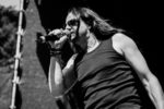 OSWALD HENKE gehört zweifellos zu den prägenden Persönlichkeiten der deutschen Gothic-Szene. Der avantgardistische Stil, den die inoffiziell aufgelösten GOETHES ERBEN wie kaum eine andere Band beherrschte, findet sich in seiner neuer Band FETISCH:MENSCH nur noch rudimentär wieder. Musikalisch geht es hier deutlich erdiger zur Sache, aber Texte und Gesang sind in ihrer lyrischen Vehemenz unverkennbar Henke. Die Kompromisslosigkeit des eigenwilligen Künstler zeigt sich vor allem in der Vermarktung der Band: die Alben gibt es nur als Download und Merchandise-Artikel werden nach der 100. Bestellung aus dem Sortiment genommen. Obwohl Henke sichtlich mit der Hitze zu kämpfen hatte und im Laufe des Auftritts eine ungesund rote Farbe annahm, riss er seine Fans mühelos in den Bann und führte durch eine abwechslungsreiche Setlist aus ruhigeren Stücken („Ich fang dich auf“) und rockigen Songs („Zwischenseelenträume“, „Kinderherzen“). Auch seinem tiefschwarzen Zynismus konnten die tropischen Temperaturen nichts anhaben: „Bevor ihr tot umkippt, reicht euer Wasser bitte an euren Nebenmann weiter – er kann es gebrauchen.“
