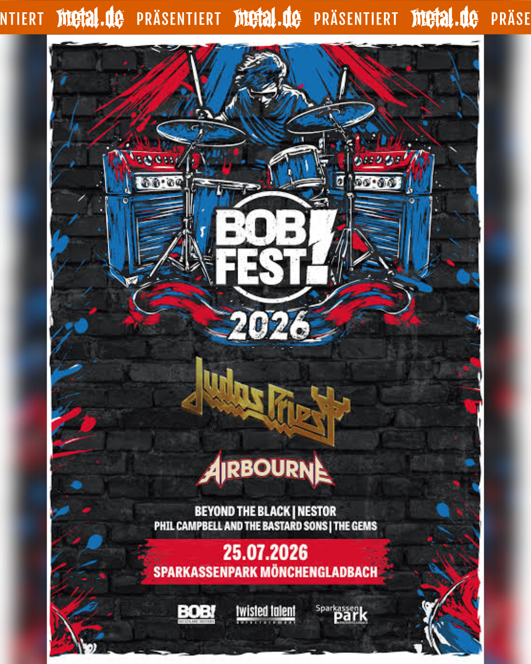 RADIO BOB! lädt zur dritten Ausgabe vom BOBfest! Auch 2026 feiert das Rock Radio zusammen mit Euch im SparkassenPark Mönchengladbach. Tausende Rockfans vor der Bühne und feinster Rock- und Metalsound auf der Bühne.