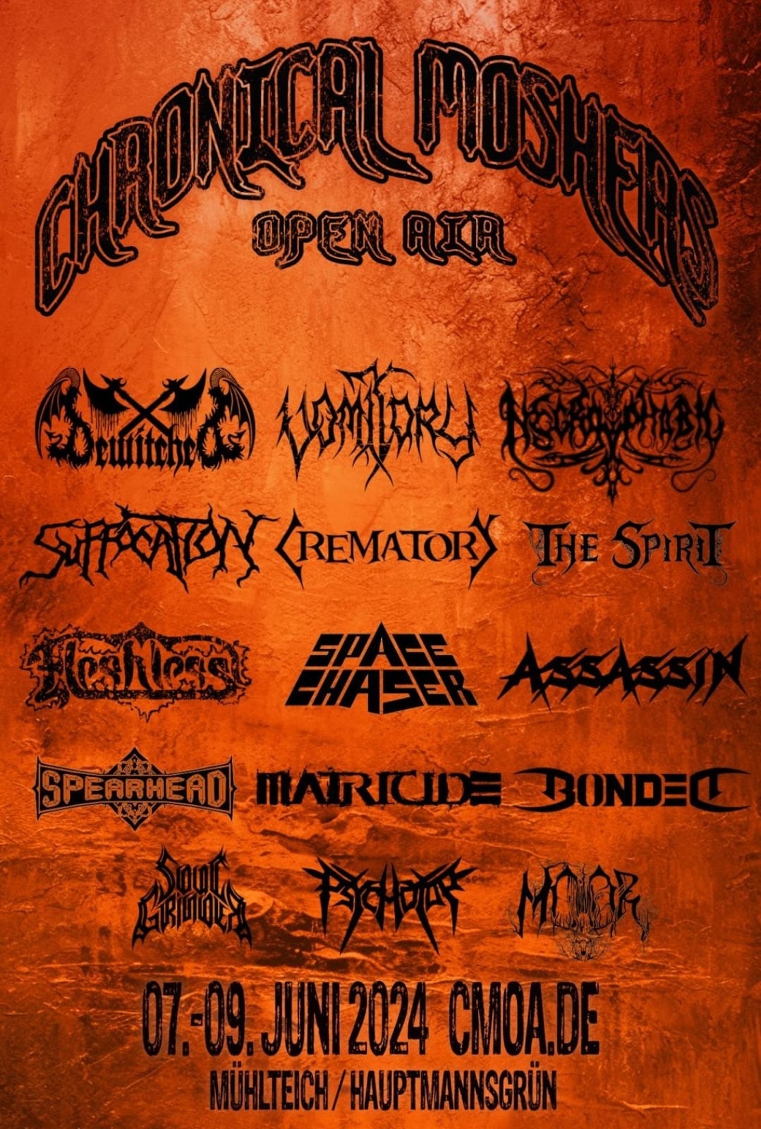 Vom 7. bis 9. Juni 2024 öffnet das „Chronical Moshers Open Air“ am Mühlteich/Hauptmannsgrün (Sachsen) seine Pforten und heißt Metalfans aus Nah und Fern willkommen.