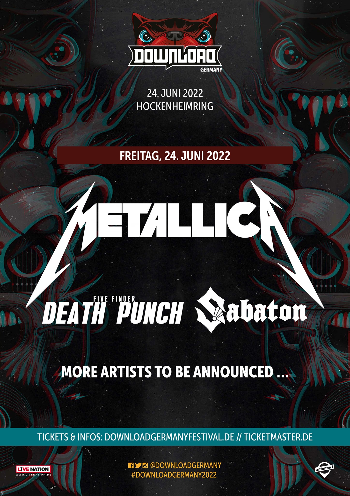 Als Konkurrenz zu Rock am Ring gestartet und mit METALLICA und FIVE FINGER DEATH PUNCH bei der ersten Ausgabe: Diese ähnlichen Vorzeichen der Rock im Revier-/Rockavaria-Festivals gelten nun auch für das Download Germany. Heute hat nämlich Live Nation GSA bekanntgegeben, dass die beiden genannten Bands und SABATON bei der ersten Ausgabe am 24. Juni 2022 auf dem Hockenheimring dabei sein werden.