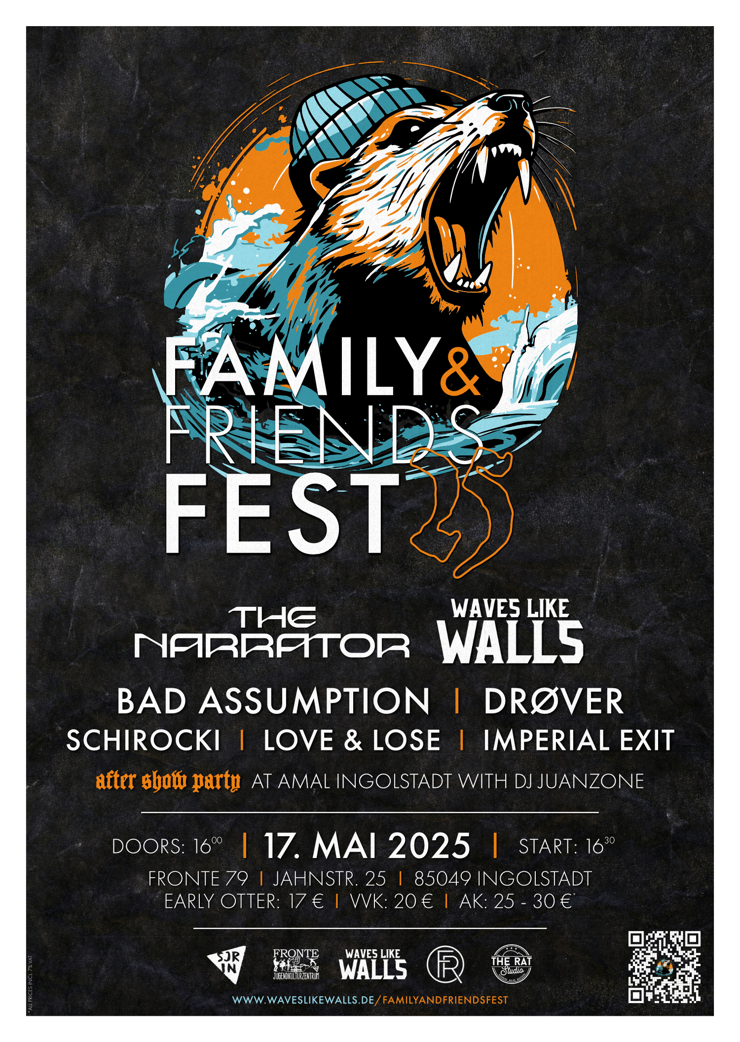 Das Family & Friends Fest geht am 17. Mai 2025 in seine vierte Runde – und lockt mit einem sorgfältig zusammengestellten Lineup aus Hardcore, Metalcore und Pop Punk in die Fronte 79 nach Ingolstadt. Was als Bandjubiläum begann, hat sich mittlerweile zu einer festen Größe im süddeutschen Raum entwickelt. Veranstaltet wird das Indoor-Festival von der Ingolstädter Melodic Hardcore Band WAVES LIKE WALES, die ganz in D.I.Y. Manier nicht nur Booking, Orga und Ablauf übernehmen, sondern an diesem Abend auch ihre einzige Hometown Show des Jahres spielen. Wer sie schon einmal gesehen hat, weiß: Energielevel auf Anschlag. Stagedives, High Kicks und Moshpits incoming!