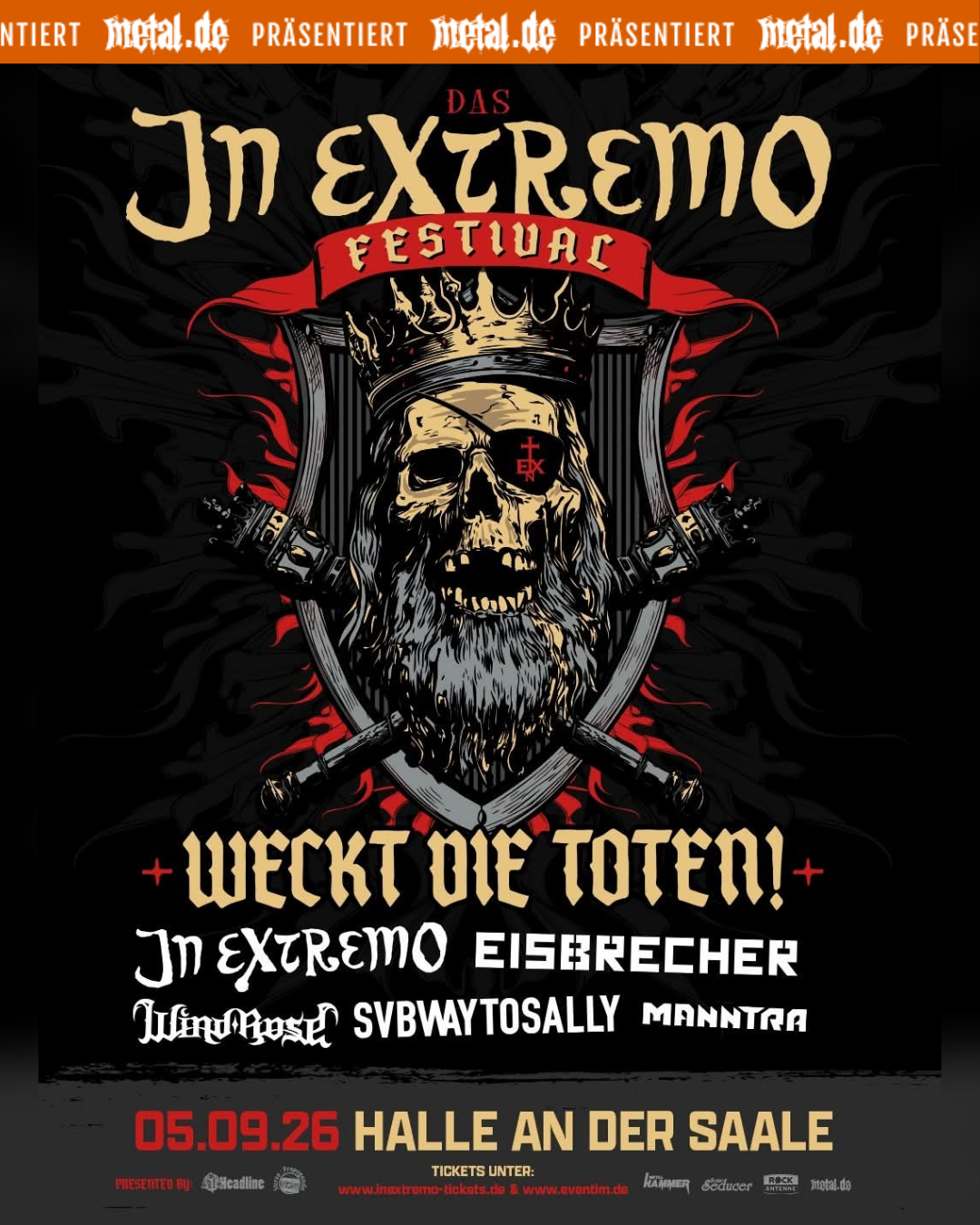 Der Vorverkauf startet am 05.09.2025 um 12 Uhr im In Extremo-Ticketshop und bei Eventim. Ab dem 10.09.2025 gibt es die Tickets an allen bekannten VVK Stellen.