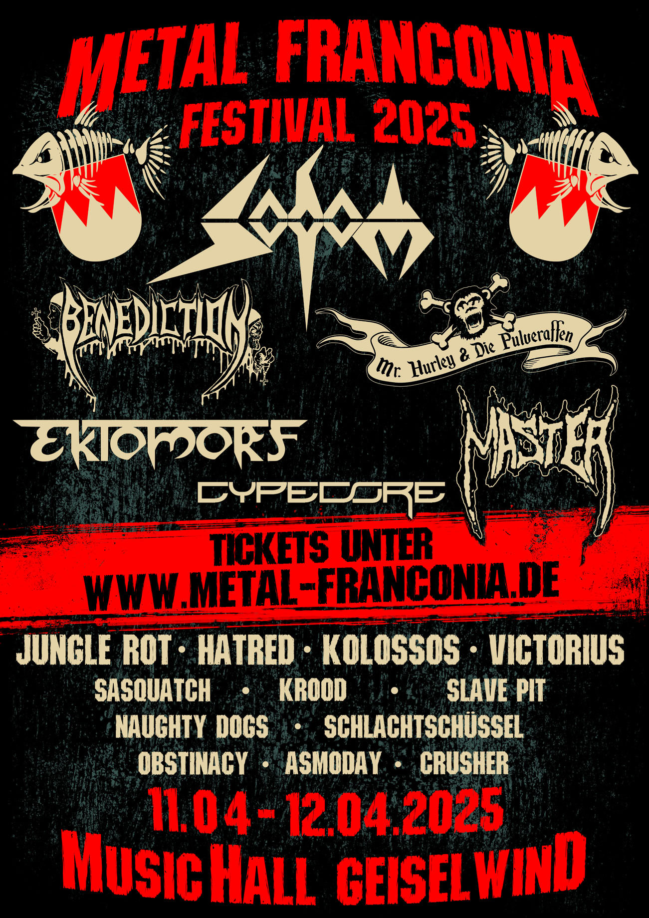 Ein ganzes Wochenende voller großartiger Musik mit 18 Bands aus den unterschiedlichsten Metal-Genres. Jeder wird garantiert etwas finden, das ihn begeistert. Metal Franconia 2025 ist deine Gelegenheit, neue Musik zu entdecken, mit den Legenden der Szene abzurocken und den wahren Metal-Spirit zu erleben.