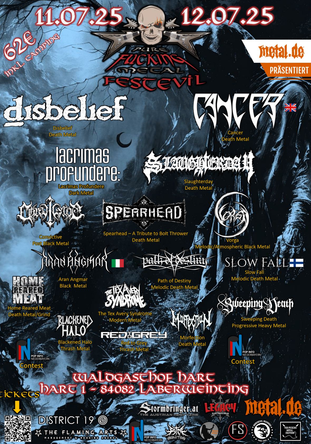 Nach der ausverkauften Edition 2024 startet auch die Ausgabe 2025 am 11. und 12.07.25 mit einem Line-Up, das sich sehen lassen kann. Unter anderem spielen CANCER, DISBELIEF, LACRIMAS PROFUNDERE, SLAUGHTERDAY, ARAN ANGMAR, VORGA und viele mehr.