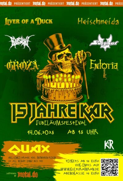 Der Kultur am Rande e.V. ist ein Münchener Konzertveranstalter für regionale Kleinkünstler:innen und Randkulturschaffende. Der Verein feiert sein 15. Jubiläum mit einem Festival mit sechs Bands im Quax.