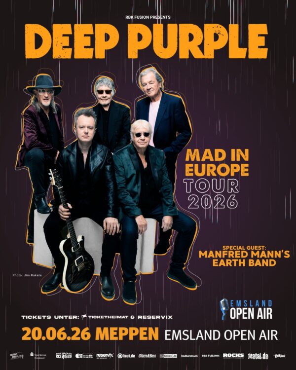 | 20.06.26 | metal.de präsentiertDeep Purple - Mad In Europe Tour 2026Deep PurpleEmsland Open Air, Meppen |