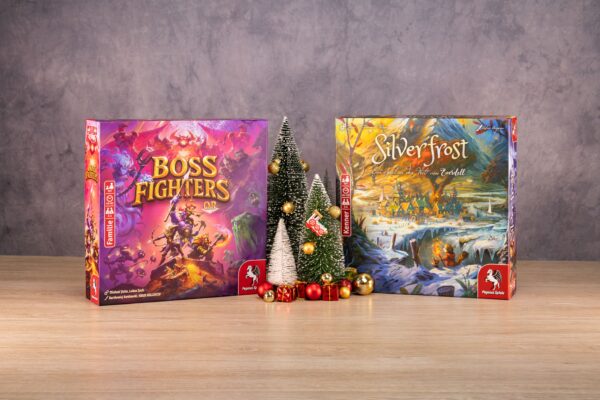 Damit der nächste Spieleabend an den Feiertagen gesichert ist, haben wir noch ein weiteres Brettspielepaket für euch. Dieses Mal haben wir mit Boss Fighter QR einen Hybrid aus klassischem analogem Spiel, das mit einer digitalen App zusammenwirkt, für euch. Es bietet Spieleaction in verschiedenen Schwierigkeitsstufen. Mit Silverfrost gibt es dazu noch ein klassisches Strategiespiel, das in der winterlichen Welt von Everdell verortet ist. Es gibt vieles zu erforschen.