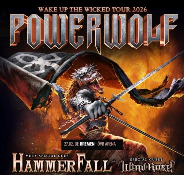 Ihr habt immer noch nicht genug? Dann machen wir weiter mit einem Event der Extraklasse: POWERWOLF werden zusammen mit HAMMERFALL & WIND ROSE im Rahmen der Wake Up The Wicked Tour 2026 am 27.02.2026 auch in der Bremer ÖVB-Arena Halt machen und dort kräftig für Furore sorgen. Wir verlosen in Zusammenarbeit mit der Revue Konzertagentur GmbH 2×2 Tickets für das Konzert.