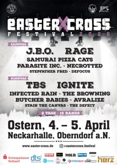 Das Line-Up für das EASTER CROSS 2026 am 04. und 05. April 2026 in Oberndorf am Neckar steht nach Austocken von AVRALIZE fest und es ist nur noch etwas mehr als ein Monat, bis die Tore