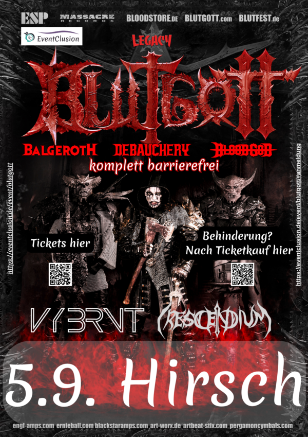 In diesem Zuge leistet Daniela wertvolle Pionierarbeit und veranstaltet am 05.09.2024 im Hirsch (Nürnberg) einen ersten Konzertabend mit dieser Vorgehensweise. Als Headliner konnte sie BLUTTGOTT verpflichten, die von VYBRNT und CRESCENDIUM supportet werden.