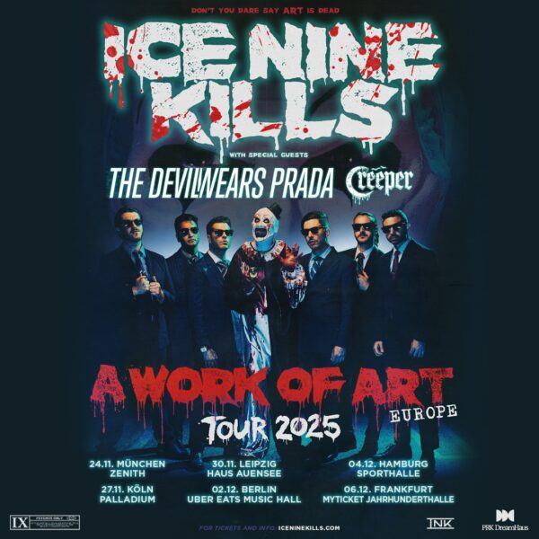 Die ICE NINE KILLS sind derzeit auf Tour. Wir haben hier ein Schmankerl für Kurzentschlossene. Die Band wird am kommenden Montag, den 24.11.2025, im Zenith in München auftreten. Wir verlosen in Zusammenarbeit mit Oktober Promotion 1 x 2 Tickets für dieses Ereignis.