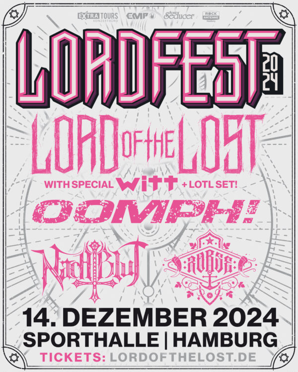 Die Hamburger Goth-Rocker blicken mit 2024 auf das erfolgreichste Jahr ihrer Bandkarriere zurück. Grund genug also, dies gebührlich zu feiern. Daher laden LORD OF THE LOST alle Fans herzlich zu der neuesten Ausgabe des Lordfests ein. Wie auch im letzten Jahr werden LORD OF THE LOST in der Heimatstadt Hamburg feiern. Das eintägige Festival wird dieses Mal in der Sporthalle ausgerichtet.