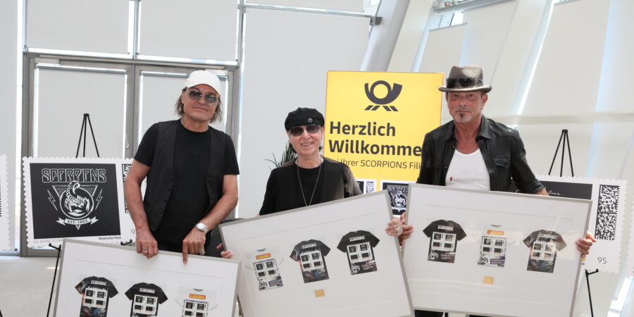 Die Deutsche Post ehrt Deutschlands erfolgreichste Rockband, die SCORPIONS, anlässlich ihres 60. Bühnenjubiläums mit einer limitierten Briefmarken-Sonderedition. Sie erscheint am 1. Juli 2025 unter dem Motto „60 Jahre SCORPIONS“. Die Edition beinhaltet vier verschiedene Briefmarken: Ein Motiv zeigt das unverkennbare Markenzeichen der Band, den Skorpion. Auf einem anderen ist das ikonische Peace-Zeichen mit den Begriffen “Love” und “Rock ‘n’ Roll” dargestellt, was die Philosophie der Band widerspiegelt (“Love, Peace & Rock ‘n’ Roll”). Die beiden anderen Marken bilden von Sänger Klaus Meine handgeschriebene Text-Auszüge der größten Hits „Wind Of Change“ und „Rock You Like A Hurricane“ ab, unterlegt mit den Farben der Deutschlandflagge.