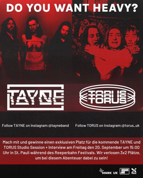 TAYNE und die Band TORUS werden je zwei Songs spielen, gefolgt von einem Interview, das für einen Podcast verwendet werden soll.