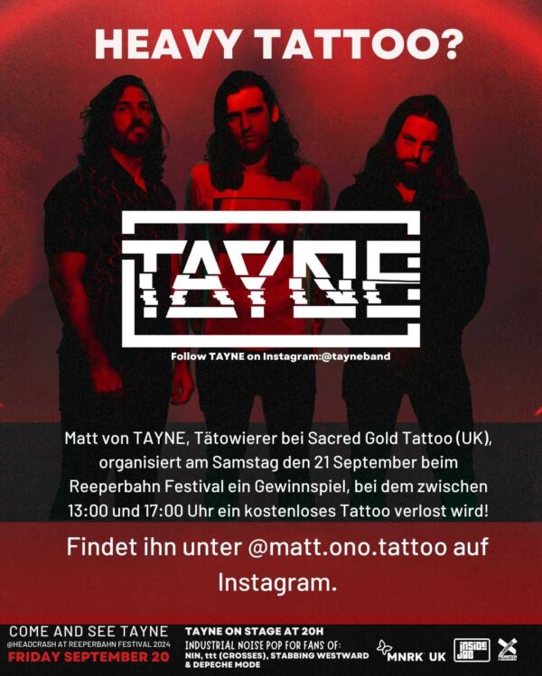 Mit „Down“ hat das britische Industrial-Noise-Pop-Trio TAYNE die erste Single ihres demnächst erscheinenden Albums veröffentlicht. Die Band tritt nächste Woche im Rahmen des Reeperbahnfestivals in Hamburg auf und wir verlosen 3 × 2 Plätze bei der exklusiven Studio-Interviewsession am Freitag, 20. September 2024 um 15:00 Uhr, auf St. Pauli.