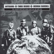 Mit dem Beruf des Journalisten ist es ja so eine Sache. Zum Einen ist es seine Aufgabe, das wissensdurstige Publikum über aktuelle Geschehnisse aufzuklären und es mit so viel neuen Informationen wie möglich zu versorgen. Zum Anderen ist er auch immer Sprachrohr der Gesellschaft, oder zumindest eines Teils von ihr, und somit auch verantwortlich für Meinungsmache. Der Haken daran ist, dass, um Meinungen zu vertreten oder zu beeinflussen, ein gewisser Background an Hintergrundinformationen vorhanden sein muss und da ich von Grindcore so viel verstehe wie der US-amerikanische Präsident von seinem Amt, ist das hier eine ganz knifflige Angelegenheit. Doch erstmal zu den Fakten: die vorliegende 3-Split CD ist eine Zusammenarbeit zwischen Antigama und Third Degree, wobei der dritte Beitrag namens Herman Rarebell Mitglieder beider Bands vereint. Ihr Ursprung findet sich im neuen EU-Mitglied Polen und ihre Mission ist nach dem, zugegeben kurzweiligen Hörgenuss von knapp 27 Minuten, recht klar auszumachen: voll auf die Zwölf solls hier gehen und keine sonstigen Zutaten ausser lupenreinem Grindcore enthalten. Ungefähr so weit vom Metal entfernt wie die Musik sind hier auch die Texte, die die Bezeichnung „Politgrind“ sicherlich nicht weit hergeholt erscheinen lassen (siehe die Songtitel älterer Werke wie „Fuck 14 88“ oder die Ähnlichkeit des auf dem Cover abgebildeten Soldaten zu George Junior). Somit maße ich mir auch nicht an einen Kauf dieser Platte zu empfehlen oder davon abzuraten, nur so viel: wer es richtig in die Fresse mag oder ein Stück weiter auf der Death Metal Straße gehen möchte, der kann hier ruhig mal ein Ohr riskieren. Ich geh jetzt erstmal mein Basiswissen auffrischen.