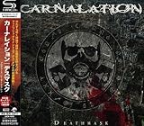 Straight und brutal holzen sich DEATHMASK eine starke halbe Stunde spielerisch fit durch ihre meist in präzisen, wieselflinken Blast-Beats oder heftig wuchtigen Uptempo, mit massigem Double-Bass-Einsatz, gehaltenen Stücken. Da frickeln auch die Gitarren mal schön technisch, jedoch immer so eingängig, dass der direkte, zerstörerische Ansatz der Songs nicht aus dem Auge verloren wird. Für die Prog-Fanatiker sind die messerscharfen Riffs sicher zu Rhythmus orientiert. Die Breaks sitzen, die Growls aggressiv und kräftig, alles ist tight auf den Punkt gespielt, und hier und da wurden auch mal Melodien zur Auflockerung eingewoben. Alles gut also? Fast, denn manchmal wirken CARNALATION auch ein wenig überambitioniert, so ist „Resistance“ ein gutes Beispiel für die übertriebene Verwendung von Stakkato. Dem gegenüber stehen aber hervorragende Stücke wie das starke „I Am God“ mit prägnanten Riffs und mächtigem, einprägsamem Refrain oder „Omega Hour“ mit seinen tollen melodischen Riffs. Im Falle von CARNALATION empfinde ich die relativ kurze Spielzeit für ein Album als angenehm, bei längerer Dauer könnte sich hier sonst durchaus Ermüdung einstellen. Als Vergleiche seien hier mal BENIGHTED, BURNING SKIES und MAN MUST DIE aufgeführt. In Sachen Sound ist hier alles im grünen Bereich, Meiste Peter Tägtgren zeichnet für die Produktion verantwortlich und hat den Granaten den nötigen Druck und auch die nötige Transparenz verschafft.