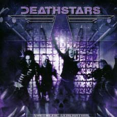 Ich muss unverhohlen zugeben, dass ich mir von dieser CD nicht viel mehr als bloßen Hype und steriler Marilyn Manson Ästhetik mit Zöpfen erwartet habe. Umso positiver überrascht bin ich nun im Endeffekt von der dargeboten Musik. Denn der Synthie-beladene Industrial Rock der Schwedenfraktion, bestehend aus alten Swordmaster und Dissection Mitgliedern, wirkt auf mich wie die fiese Schwester von The Sisters Of Mercy. Die tiefe, sonore Stimme von Sänger Whiplasher und die finsteren, melodiösen Synthiesounds kontrastieren dabei mit aggressiven Rhythmusgitarren und wuchtigen Drums. The Kovenant und Zeromancer würde ich mal als Eckpfeiler angeben. Es geht schon in die Richtung „Animatronic“ von The Kovenant, wobei Deathstars weitestgehend auf Gekrächze der Marke Psy Coma verzichten und cleanen Gesang einsetzen. Die eingängigen und haftenden Melodien wecken Parallelen zu Zeromancer, denen Deathstars jedoch deutlich lebhaftere und heftigere Gitarren und Drums voraushaben, die ganz und gar nicht dünn und künstlich klingen. Stellenweise erinnert mich der vielfach mit Effekten versetzte Gesang zudem an Rammsteins Till Lindemann – „Little Angel“ – oder auch Type O Negative Schlachtschiff Pete Steele, ohne hier weitere musikalische Verbindungen zu diesen Bands ziehen zu wollen. Durch geschickte Kompositionen und abwechslungsreiche Instrumentierung kreieren Deathstars einige hörenswerte Songs, wie z.B. das treibende „New Dead Nation“ mit seinem markanten Synthie-Refrain, das mit Akkordsalven strotzende „The Revolution Exodus“ oder das mit Clawfinger-Riffing aufwachtende „The Rape Of Virtue“. Einen wirklich herausstechenden Hit liefert das Album zwar nicht, dafür fällt aber auch kein einziges Stück ab und macht das Album einen sehr konsistenten Gesamteindruck. Dass man als Bonustrack eine sehr nahe Coverversion von Billy Idols „White Wedding“ draufgepackt hat, zeugt zwar nicht gerade von Kreativität, passt aber gut zum restlichen Album. Ob die vier Todessternchen den Nerv der Musikgemeinde mit ihrem Album treffen, wird sich wohl bald zeigen. Schlecht sind sie immerhin nicht.