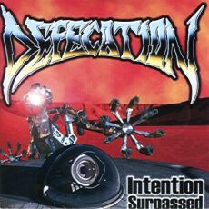 Sage und schreibe 14 Jahre ist es jetzt her, als mit „Purity Dilution“ das erste und bis jetzt auch einzige Album von Mitch Harris (damals RIGHTEOUS PIGS) und Mick Harris (damals NAPALM DEATH) alias DEFECATION das Licht der Welt erblickt hat. Innerhalb dieser Zeit wurde jenes Werk zum Klassiker, aber Plattenfirma-bedingte Vertragsquerelen machten einen Nachfolger unmöglich. Jetzt, Anfang 2003, steht mit „Intention Surpassed“ aber endlich der Zweitling der mittlerweile auf ein Soloprojekt von Mitch Harris geschrumpften Band in den Startlöchern. Was kann man nach einer solch langen Abstinenz und Tätigkeiten bei anderen Bands (u.a. MEATHOOK SEED, NAPALM DEATH) erwarten? Richtig, keine Ahnung. Aber eines kann man vorneweg direkt sagen: Altbacken klingt das „neue“ Material von DEFECATION dank einer kraftvollen, zeitgemäßen Produktion keinesfalls. Aber hat sich diese lange Wartezeit auch gelohnt? Ich würde sagen, jein. Die Songs wechseln munter zwischen fiesem Hochgeschwindigkeitsgrind-Gebolze und groovig-thrashigem, brachialem Midtempo. Dabei verhält es sich meist so, dass die schnellen Parts ziemlich uninspiriert und langweilig ausgefallen sind, dafür aber die schleppenderen, zum Bangen animierenden Riffs umso mehr gefallen (z.B. bei „Fever Pitch“ oder „Under Surveilance“). Demgegenüber stehen mit „2/3 Pure“ oder „Cryonically Preserved“ Songs, die musikalisch auf ganzer Linie überzeugen können, wohingegen mit „Worldly Whys“ auch ein kompletter Totalausfall vorhanden ist. Restliche Tracks wie „Overself“ oder „Protective Rage“ dröhnen solide, aber nicht verneigungswürdig aus den Boxen. Die einzige, richtig große Schwäche dieses Albums ist der Gesang, denn hier wird nicht brutal gegrowlt. Vielmehr sind die Vocals teilweise bis zur Unkenntlichkeit verzerrt, was auf Dauer sehr nervig werden kann. Braucht man nun dieses Album? Ganz ehrlich, ich weiß es nicht. Ein wenig Schatten trifft auf ein wenig mehr Licht und viel unspektakuläre, aber auch nicht unbedingt schlechte Solidität, was in knappen sechs Punkten mündet. Das grottige Cover habe ich mal geflissentlich übersehen.
