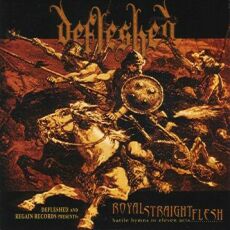 Ich verwette meinen Arsch, das DEFLESHED jetzt schon viel größer hätten sein können, wenn nicht in den etwas mehr als zehn Jahren ihres bisherigen Bestehens mit den lieben Plattenfirmen alles daneben gegangen wäre. Mal sehen, ob sich dies nun mit ihrem neuen Partner Regain Records ändert. An seiner musikalischen Ausrichtung hat das Trio kaum etwas geändert. Abgesehen von etwas mehr Variabilität in Tempo und Songaufbau bekommt der geneigte Hörer auf dem mittlerweile vierten Full-Length-Album „Royal Straight Flesh“ einmal mehr das gewohnte Brett vor den Latz geknallt. Energischer Hochgeschwindigkeits-Thrash mit massig coolen Riffs und gelegentlichen Ausflügen in todesmetallisches Fahrwasser erhitzt ohne Umschweife jeden Nacken sofort auf Betriebstemperatur. Hierbei macht vor allem Sänger/Bassist Gustaf Jorde mit seinen heiser-aggressiven Vocals eine gute Figur. Nur das Schlagzeug kann nicht ganz mit dem Rest der instrumentellen Vorstellung mithalten. Dies liegt aber weniger an Knüppelbarde Mathias Modin, dem wohl in punkto Geschwindigkeit und Präzision keiner so schnell etwas vormacht. Nein, der Sound macht hier dem Drumpuristen einen Strich durch die Rechnung, da er erstaunlich drucklos ausgefallen ist. Dazu kommt noch, dass die Snare in langsameren Parts recht blechern klingt, während der schnelleren aber in völligem Matsch untergeht. Diese Tatsache verwundert schon ein wenig, da das Berno Studio als Aufnahmeort und Daniel Bergstrand als Mischer normalerweise für klangmäßige Perfektion stehen. Nichtsdestotrotz machen aber zügellose Thrash-Ballereien wie der Opener „Hand Over Fist“, der Titeltrack oder „Blood Brigade“ gehörig Spass. Da lässt es einen auch fast komplett kalt, dass „Royal Straight Flesh“ kaum einen Innovationsfaktor vorweisen kann. Dafür sind DEFLESHEDs Nackenbrecherfähigkeiten anno 2003 umso ausgeprägter. Überzeugt euch selbst!