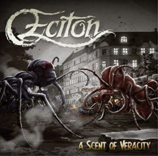 Was ECITON allerdings auf dem Melo-Death-Treffen zu suchen hatten, bleibt mir beim hören von „A Scent Of Veracity“ schleierhaft. Sonderlich melodisch gehen die Herren heutzutage – fünf Jahre nach der ersten Veröffentlichung (was auch am Tod gleich zweier Bandmitglieder liegen könnte) – nämlich nicht zu Werke. Dank INIQUITYs Jesper Frost am Schlagzeug kann es sich die Band leisten, ein ordentlich brutales Brett zu klöppeln. Oftmals kommen einem die einschlägigen amerikanischen Vertreter der Todeszunft in Sinn. Den Groove hat man auch schon bei CANNIBAL CORPSE gehört, zähe, orientalisch angehauchte Stücke (wie z.B. „Manipulated Death“) erinnern an MORBID ANGEL oder NILE. Und die sind alle nicht gerade als zartbesaitet bekannt.