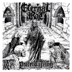 Apropos Songs: ETERNAL ROT haben für „Putridarium“ vier längliche Songs aufgenommen, die jedoch jegliches Gespür für Kompositionen vermissen lassen. Im Grunde genommen ist es völlig egal, ob die dreißig Minuten Spielzeit jetzt auf ein, vier oder vierzig Songs verteilt sind. Am besten wären allerdings null Songs. Denn das Ganze hat am ehesten den Charakter einer hingestümperten Jamsession, bei dem der Schlagzeuger im Halbschlaf den Gitarrenanfängerriffs folgt. Dafür würde selbst ein Vielschreiber wie Rogga Johansson seine Mitmusiker hochkant aus dem Proberaum schmeißen.