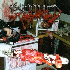 Stellt schon mal Lappen und Eimer bereit, um nach dem Genuß dieses, sich in Kreissägenmanier in euren CD – Schacht fressenden Silberlings den Teppich vom Blut zu befreien! Seit 1991 zelebrieren Exhumed ihre Ausgeburt des musikalischen Wahnsinns und desorientierter Extremität bereits und haben seitdem wohl nicht viel Input anderer Stile erhalten, gut so ! Weiter so ! Exhumed beleben den Deathmetal erneut und führen ihn ins nächste Jahrtausend ! Exhumed metzeln und sägen sich durch die Landschaft, sowohl Artworkmäßig, als auch musikalisch. Ihr Grinddeath ist so herrlich brutal und vernichtend, daß es einen glatt an die Wand drückt und die Gehörgänge zu zerfetzen droht. Vom Gaspedal kommen Exhumed eigentlich selten herunter, nur für kurze, sozusagen aus dramaturgischen Gründen gesetzte Breaks und polternde Einleitungsthemen. „Ach nee, nicht schon wieder so ein Prügelalbum“ schreit ihr ? Hehe, da muß ich Euch leider eines besseren belehren, denn Exhumed verstehen es, ihr Gebolze weder langweilig, noch monoton, noch altbacken klingen zu lassen. Diese Band läßt sich ohne weiteres in einem Atemzug mit Größen wie Morbid Angel, Cannibal Corpse oder Autopsy nennen und entsprechend krank und jaulend klingen dann auch ihre improvisierten Gitarrenriffs, welche mir wieder einmal ausgesprochen gut gefallen haben ( jaja, ich weiß, wie sollte es bei mir auch anders sein….) Dieses bluttriefende Stück Plastik wurde übrigens von James Murphy produziert, welcher sich ja bereits als Gitarrist bei Death, Obituary und Testament einen Namen gemacht haben dürfte.