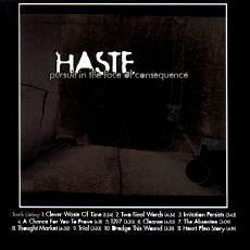 1Mit „Pursuit in the face of consequence“ legt die 1995 in Alabama formierte Band Haste ihr Debut vor. Die CD stellt eine Mischung aus Hardcore und Metal Elementen dar und qualifiziert sich mit dem ein oder anderen Lied durchaus dafür, einen Hüpfcore begeisterten Discomob zufriedenstellen zu können. Die Songs erhalten ihre charakteristische Wirkung vor allem durch die beiden recht unterschiedlich klingenden Sänger Kelly und Chris. Während die eine Gesangslinie an allseits bekannte und beliebte Bands wie Downset erinnert, kommt der zweite Vocalist eher aus der derben Schreicore Ecke. In Kombination mit wirklich griffigen Riffs und zugänglichen Melodien kommen dadurch ganz ordentliche Songs aus den Boxen. Allerdings gilt das für ungefähr 8467 andere Bands ebenso, und Haste haben es entsprechend schwer, sich ausreichend von der Masse abzusetzen. Lediglich die zwischendurch eingestreuten Anleihen an Metal in Form von tonnenschweren Gitarrenparts bieten etwas Abwechslung. Prinzipiell fehlt es den Songs an diesem besonderen Etwas, was verhindert, daß sie so schnell aus dem Hirn des Zuhörers verschwinden, wie sie hineingekommen sind. An vergleichbaren Bands fehlt es in dieser Richtung wie gesagt nicht; trotzdem möchte ich mich jetzt nicht auf einen konkreten Vergleich festlegen. Die Produktion geht in Ordnung und die Songs bieten handfesten Hardcore mittlerer Güteklasse – es gibt demnach eigentlich keinen Grund, nicht mal ein Ohr zu riskieren.