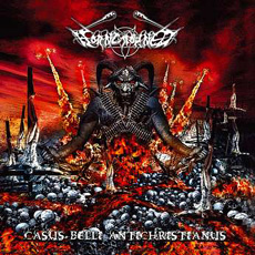 Optisch hat sich schon einmal nicht viel geändert, zumindest was die Farben angeht. Doch zeigte auf „Satanic Armageddon“ das viereckige Bildchen noch den Gehörten, wie er in die Schlacht zieht, so scheint diese nun erfolgreich geschlagen, denn das Bild zeigt neben klischeehafter Symbolik auch einiges an Schädeln und den triumphierenden Herrn des Bösen. Sollte das auch etwas an der Musik geändert haben? Soweit mir meine Erinnerungen keinen Streich spielen, nicht, zumindest nicht grundsätzlich. „Casus Belli Antichristianus“ ist wieder mal ein vom souverän rumpelnden Schlagwerk bestimmtes Album, welches durch minimalistische Riffs und ziemlich harsch gebellte Vocals ergänzt wird. Das Ganze wird aber dank einiger Breaks und dem ein oder anderen wirklich groovigen Part, im Gegensatz zum Vorgängeralbum, aufgewertet. Spannend oder wirklich aufregend sind HORNCROWNED aber auch mit Album Nummer drei nicht, dazu fehlt es den Kolumbianern noch immer an Bissigkeit, an treffsicherer Brutalität und an dem zündenden Momentum.