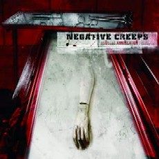 Aufgestellt werden Negative Creeps aus Griechenland, die es schon seit den frühen 90er Jahren gibt, doch erst seit 1998 formte sich so langsam ihre musikalische Identität heraus, die sie liebevoll Satancore nennen. Das soll soviel heißen, dass das Quintett versucht Thrash, Hardcore, Death und Black Metal zu vereinen. Was sich umständlich anhört lässt sich eigentlich bis auf wenige Ausnahmen auf Thrash/Death reduzieren – und der grooved ganz ordentlich, schwer und dunkel. Lieder, wie das gute „Lateral Losses“ oder “Methods of Dissonance“ zeigen, dass hier richtige Könner am Werk sind, doomige Anteile werden durch die bleierne Stimme des Sängers unterstrichen und die Instrument bekommen genug Spielraum mal ihr eigenes Ding durchzuziehen.