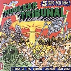 Braucht ihr noch Musik für die nächste Party? Dann habe ich hier genau das richtige für Euch. Versucht es doch einfach mal mit den Deathgrindern Nuclear Tribunal. Die Musik macht echt Spaß und es wird gebolzt bis zum geht nicht mehr. Vom Funanspruch bekommt man dabei zwar leider nicht mehr viel mit, aber diese Musik fetzt und groovt und dürfte beim Pogo für umgekippte Bowletöpfe, verstreute Salzstangen und dauerklingelnde Nachbarn sorgen. Das ganze wird auf einem technisch hohen Niveau praktiziert und ist angemessen dumpf abgemischt, so daß Eure Baßboxen eigentlich auch im Takt hüpfen dürften und wer mag es nicht, wenn nach ordentlichem Geknüppel gleich ein kurzes Blastbeatintermezzo als Bonus obendrauf gelegt wird? Zumal hier Tempi- und Rhythmuswechsel offenbar zum Prinzip erhoben wurden, so daß man die Musik schwer berechnen kann. Das wäre doch auch mal ein nettes Partyspielchen: Welcher Rhythmus kommt als nächstes?:-) Also saufen, kaufen, Amoklaufen!