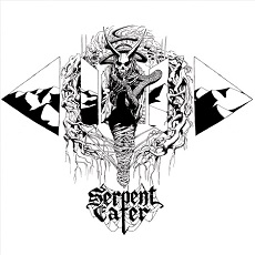 Die scheinbare Produktivität relativiert sich zudem, wenn man dann sich die acht Songs auf „Serpent Eater“ anhört. Klar hat das Gerumpel, das es dort zu hören gibt, einen gewissen rauen Charme, aber ich habe eigentlich schon nach zwei Songs genug gehört: Riffs von der Stange, harmonische Sprünge, die schon in den 1990er Jahren ausgelutscht waren, wieder und wieder dieselben rhythmischen Muster… Glatter Durchschnitt, würde ich an dieser Stelle sagen. Punktabzug gibt es dann aber für arge Timing-Probleme im zweiten Song „His Master’s Voice“, die sehr wackligen Doublebass- und Blastbeat-Passagen, außerdem hat sich ausgerechnet mit dem Titeltrack ein klanglich unfertiger (nicht gemasterter?) Song eingeschlichen, der aber interessanterweise in dieser extrem rohen Fassung der Musik selbst besser zu Gesicht steht als die sonstige Produktion, die mich hin und wieder an TOTENMONDs „Fleischwald“ erinnert.