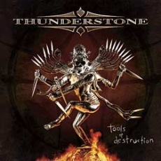 Finnland – Land der tausend Seen. Fast genauso viele Songideen verbraten die im Frühjahr 2000 gegründeten Finnen THUNDERSTONE im bereits dritten Album „Tools Of Destruction“. Mit dem Signing dieser Band hat das Donzdorfer Label Nuclear Blast erneut wieder feines Gespür für hochkarätige Talente bewiesen. Mit ansprechendem Melodic Power Metal wissen THUNDERSTONE zu überzeugen. Das letzte Album „Burning“, welches ja auch schon aufhorchen lies, ist gerade mal ein gutes Jahr alt. Doch trotz der geringen Zeitspanne kann das neue Werk erneut als sehr gelungen bezeichnet werden. Gleich der Opener „Tool Of The Devil“ gefällt mit dem sehr eingängigen Chorus, dicken Gitarrenriffs und mitreisendem Rhythmus im Midtempo. Und auch der zweite Song „Without Wings“ rockt ordentlich nach vorne, das Tempo wird hier angezogen, die Riffs sind noch fetter und erneut schwebt wieder über allem ein übermächtiger Refrain. In diesem Stil setzt sich das Album fort. Die Songs zeichnen sich durch hart rockende Riffs, starkem Gesang sowie herrlich eingängige Melodien aus. Gerade die Stimme erinnert mich in manchen Momenten ein wenig an Ronnie Atkins von den PRETTY MAIDS. Natürlich sind auch jede Menge feiner Soli vorhanden, ohne allerdings den Songfluss durch zuviel Gefrickel zu stören. Desweiteren schimmert auch stets eine gewisse Melancholie durch, welche der Musik noch mehr Tiefgang verleiht. Positiv fällt auch das eher zurückhaltende Keyboard auf. Genretypisch sind natürlich auch auf dieser CD Ruhepole in Form von balladesken Parts wie z. B. bei „Another Time“ vertreten. Die teilweise im Zusammenhang mit THUNDERSTONE vorgenommenen STRATOVARIUS-Vergleiche kann ich indes nicht ganz nachvollziehen, ist die Band doch eigenständig genug, um einen eigenen Sound zu attestieren. Dieser zeigt sich relativ hart und schielt nur minimal in die Bombast-Schiene. Aufgenommen wurde „Tools Of Destruction“ in den Sonic Pump Studios in Helsinki. Der Sound ist druckvoll, klar und direkt. So kann neben der gelungenen Musik auch die Produktion glänzen.