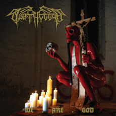 TSATTHOGGUA aus Marl hatten sich ja vor fünf Jahren reformiert und 2020 mit „Hallelujah Messiah“ erstmal altes Material neu aufgelegt. Seitdem passierte nicht viel – vermeintlich – denn das Quartett steht urplötzlich mit „We Are God“ auf der Matte. Wenn Comeback, dann auch richtig, mögen sich die Herren North Wind, Nar Marratuk, False Prophet und Lightning Bolt gedacht haben. Und dass es nicht halbgar ausfällt, das zeigt schon das geschmackvolle Cover: Lack, Gasmaske, Kerzen, ein Totenschädel und ein Kruzifix in stilsicherer Vereinigung. Einzig die Ledermasken, die die Herrschaften live gerne zur Schau tragen, fehlen.