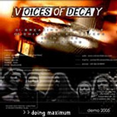 Lange war es still um VOICES OF DECAY, von denen man seit 2002 eigentlich nichts mehr hörte. Nach Besetzungs- und Vertragsproblemen sind sie aber nun mit „Doing Maximum“ zurück. Ich weiß nicht, wie oft auf dem Promozettel erwähnt wird, dass Lukas auch bei GRAVEWORM tätig ist – kann er ja auch nichts für. Im Ernst, ich kann mir kaum vorstellen, dass jemand die Scheibe kauft, nur weil 20 mal darauf hingewiesen wird, dass ein GRAVEWORM-Member mit in der Band ist. Zumal Lukas viel eher bei VOICES OF DECAY war, als bei GRAVEWORM. Aber sei es drum, widme ich mich lieber der Musik. Mit insgesamt gut 23 Minuten und vier Songs ist „Doing Maximum“ nur ein kleines Appetit-Häppchen auf die nächste Scheibe. Die Musik ist teils brutal (besonders der Gesang), aber vielfach auch recht lieblich, durch den Einsatz von Keyboards. Obwohl die Tasten ziemlich oft zum Einsatz kommen, sind diese nicht aufdringlich oder störend. Besonders in „Shivering Blackness“ fallen die Keyboards sehr prägend aus, in den anderen Tracks (z.B. In A Web) wurden sie etwas stärker in den eigentlichen Song eingewickelt, was recht gut geglückt ist.
