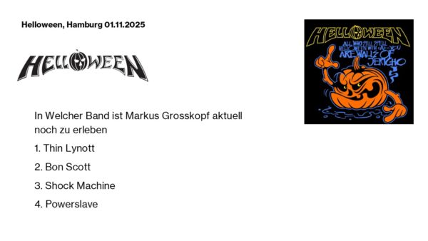 | 01.07. - 04.07.26 | metal.de präsentiertRockharz 2026 (Festival)Alice Cooper, Helloween, Emperor, Subway To Sally, Kataklysm, AGNOSTIC FRONT, Knorkator, Finntroll, Biohazard, Soulbound, Ex Deo, Annisokay, Gothminister, Haggefugg, Final Cry, Die Habenichtse, Stahlmann, Motorjesus, Dominum und BetontodFlugplatz Ballenstedt, Ballenstedt |