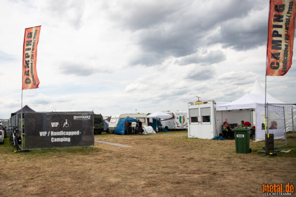 Die Veränderungen, die seitdem auf dem ROCKHARZ Einzug gehalten haben, sind vielfältig. Neben dem wohl einmaligen Inklusionscamp mit eigener Rezeption samt Bändchenausgabe gibt es barrierefreie Eingänge zum Infield und zum Merch-Stand. Auch am Autogrammstand von metal.de haben wir mittlerweile eine barrierefreie Lösung parat.