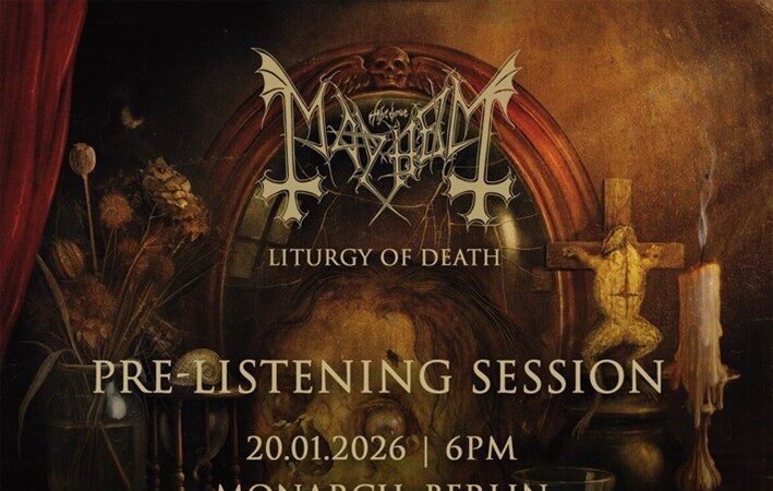 An diesem Abend soll es um „Liturgy Of Death”, das neue Album von Mayhem, gehen. Es wird in Gänze, inklusive seiner beiden Bonustracks, exklusiv vorab gestreamt. Bei einem leckeren Kaltgetränk können die Anwesenden den Albumklängen lauschen.