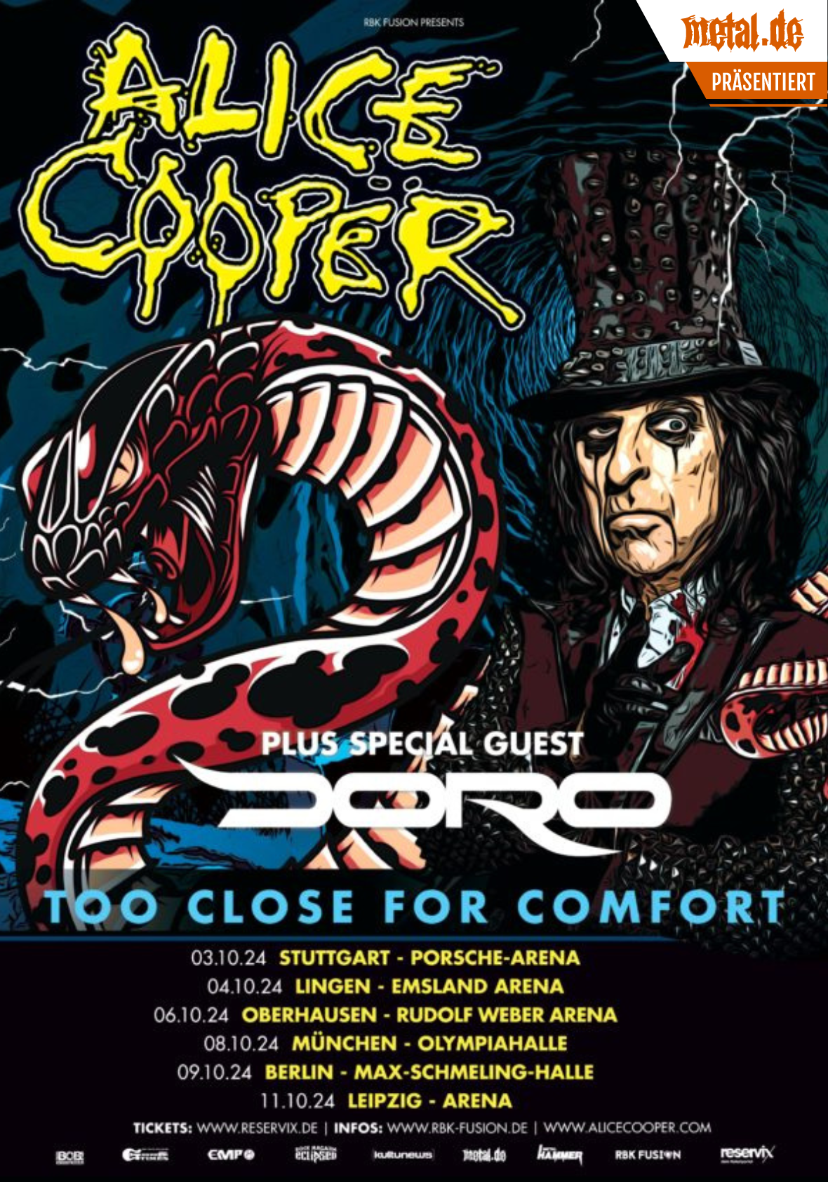 | 11.10.24 | Arena Leipzig, Leipzig Alice Cooper und Doro |