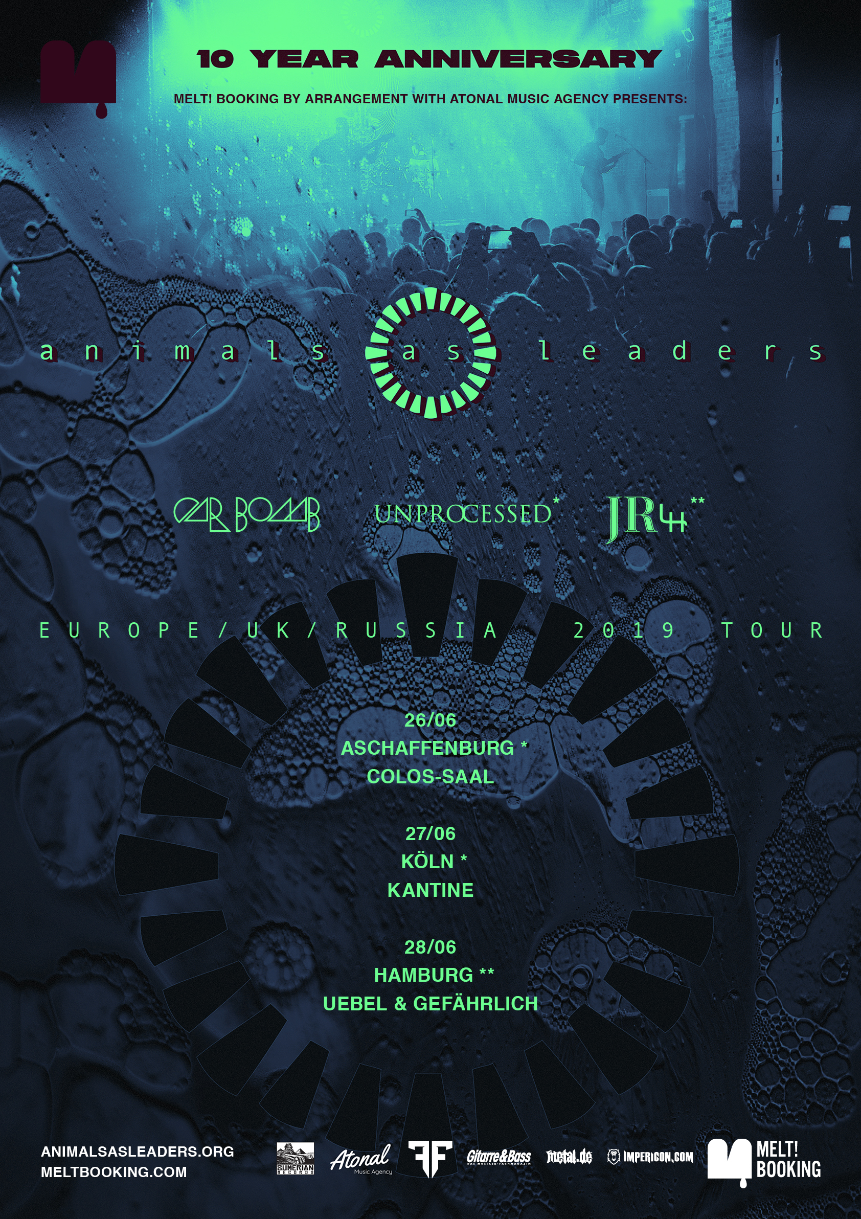 Die Support-Bands für die drei Deutschlandshows wurden am 12. Juni 2019 bekannt gegeben. In Hamburg werden CAR BOMB und JASON RICHARDSON /w Luke Holland das Publikum anheizen. In Köln und Aschaffenburg werden CAR BOMB und UNPROCESSED dafür sorgen, dass das Publikum auf ANIMALS AS LEADERS eingestimmt wird.