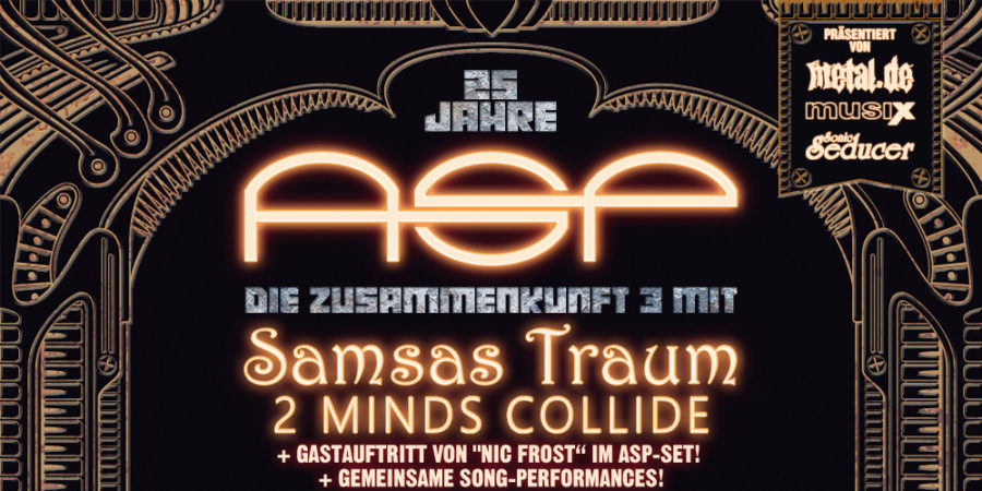 Nächstes Jahr heißt es Jubiläum im Hause ASP. Das muss natürlich ausgiebig gefeiert werden, drum hat der Gothic-Rock-Act sich illustre Freunde in Form von SAMSAS TRAUM und TWO MINDS COLLIDE eingeladen, die die kommende Sause begleiten werden. Zudem ist auch Nic Frost (ex-SPIELBANN) als Duettpartnerin angekündigt. Die Konzerttour ist dabei als Mini-Festival entworfen und es wird gegenseitige Features der Bands während der einzelnen Sets geben.