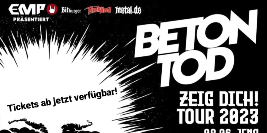 BETONTOD gehen mit ihrem am 26. Mai 2023 erscheinenden Album „Zeig dich!“ auf große Deutschlandtour. Zwei Konzerte finden im Sommer statt, der Rest ab Ende September. Die erste Single des ursprünglich für 2020 geplanten Albums „Das Kapital“ erschien bereits Ende 2019. Nun folgt es auf das 2021 erschienene „Pace Per Sempre“.