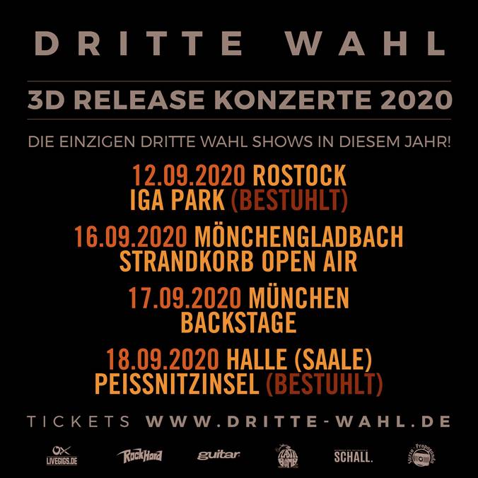 Dritte Wahl - 3D Release Konzerte 2020 Tourdaten