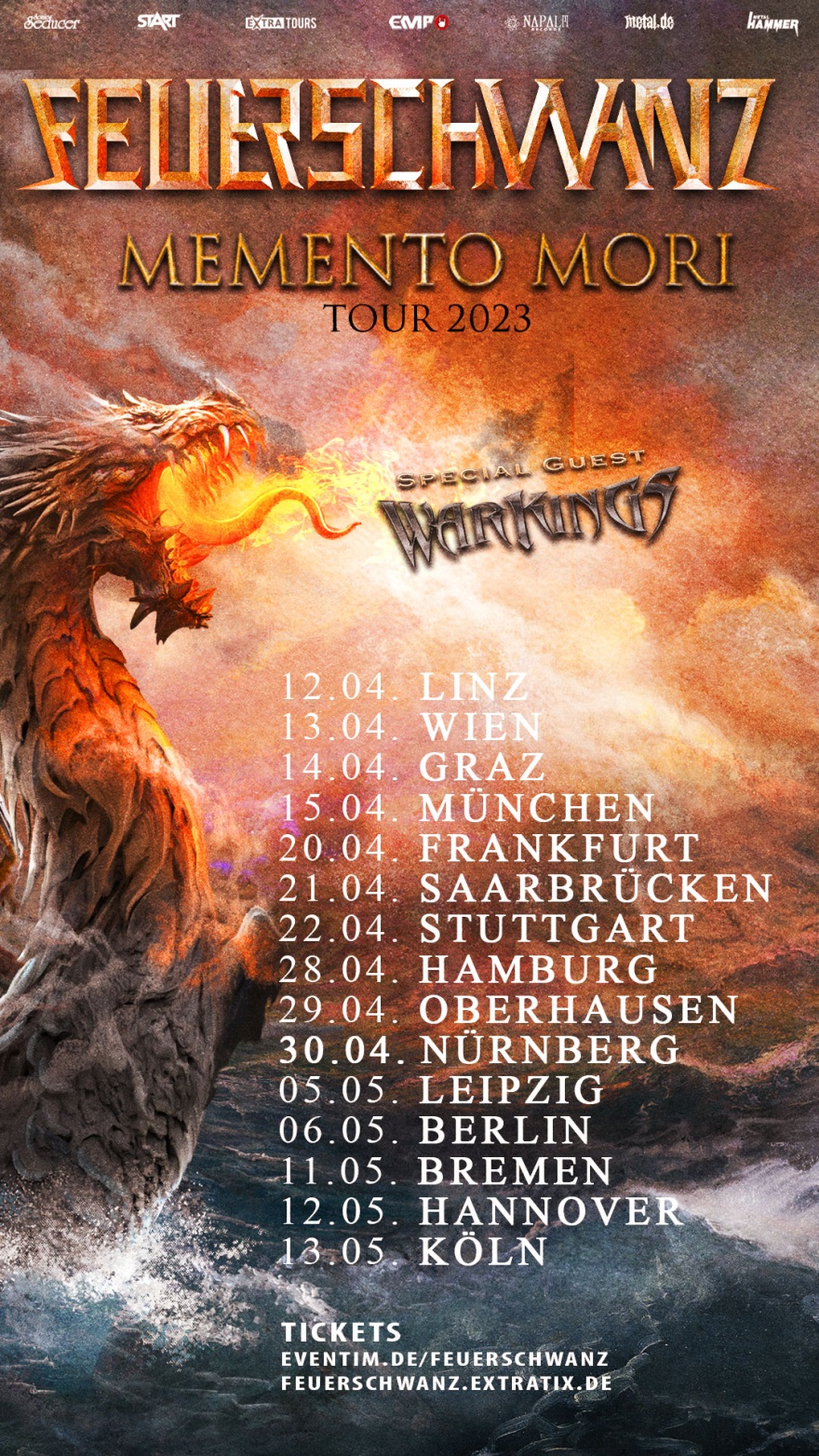 FEUERSCHWANZ gehen auf große „Memento Mori“-Tour und haben die WARKINGS, sowie vielleicht auch einige „Todsünden“ im Gepäck. Zudem gibt es in manchen Städten noch besondere Supports: