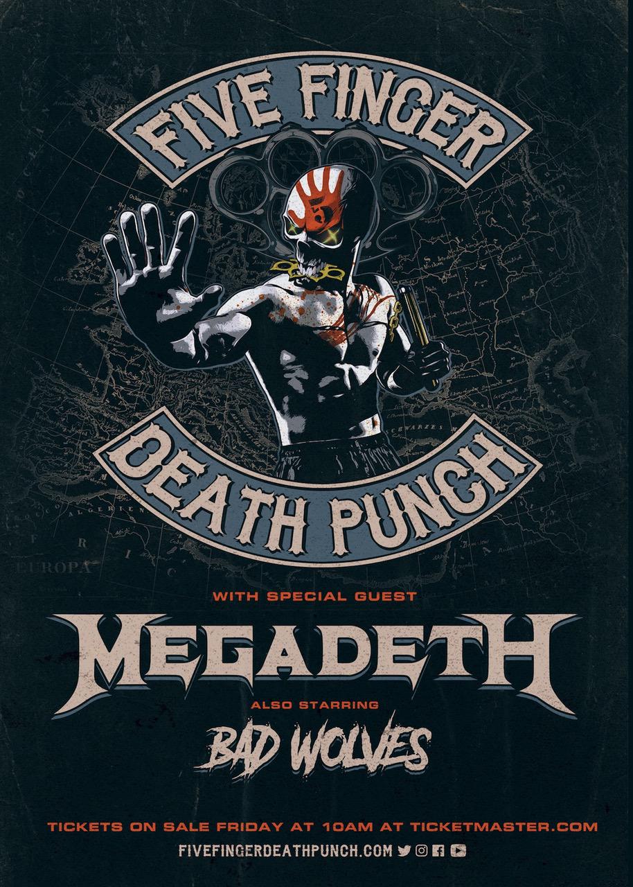 FIVE FINGER DEATH PUNCH sind seit Januar 2020 auf großer Europa Tour. In Deutschland haben sie die Kalifornier von MEGADETH und BAD WOLVES mit im Gepäck.
