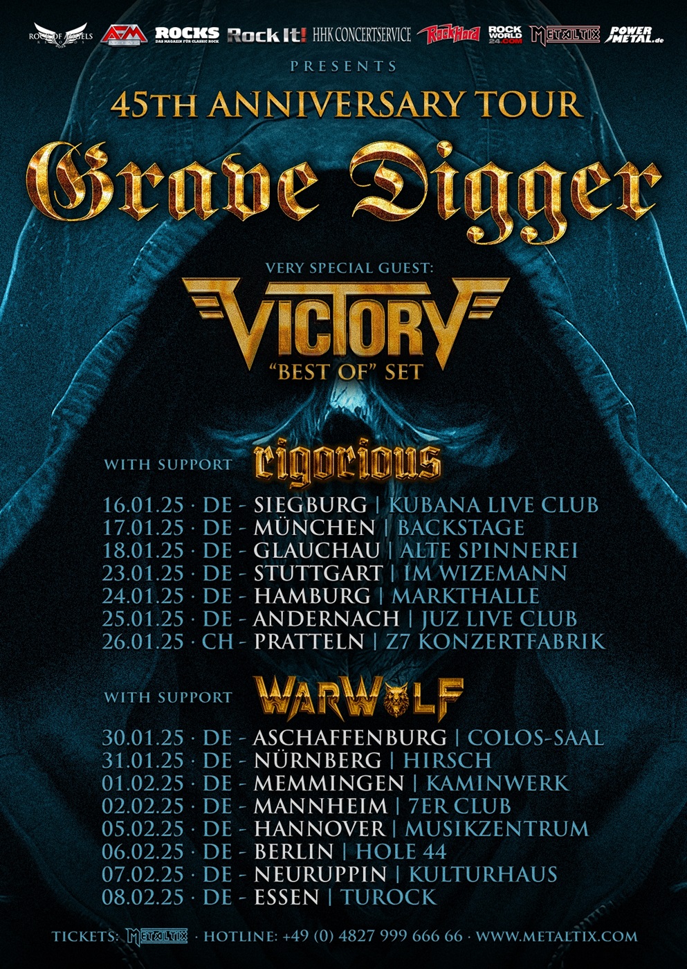 | 05.02.25 | Musikzentrum, Hannover Grave Digger, Victory, Warwolf und Rigorious |