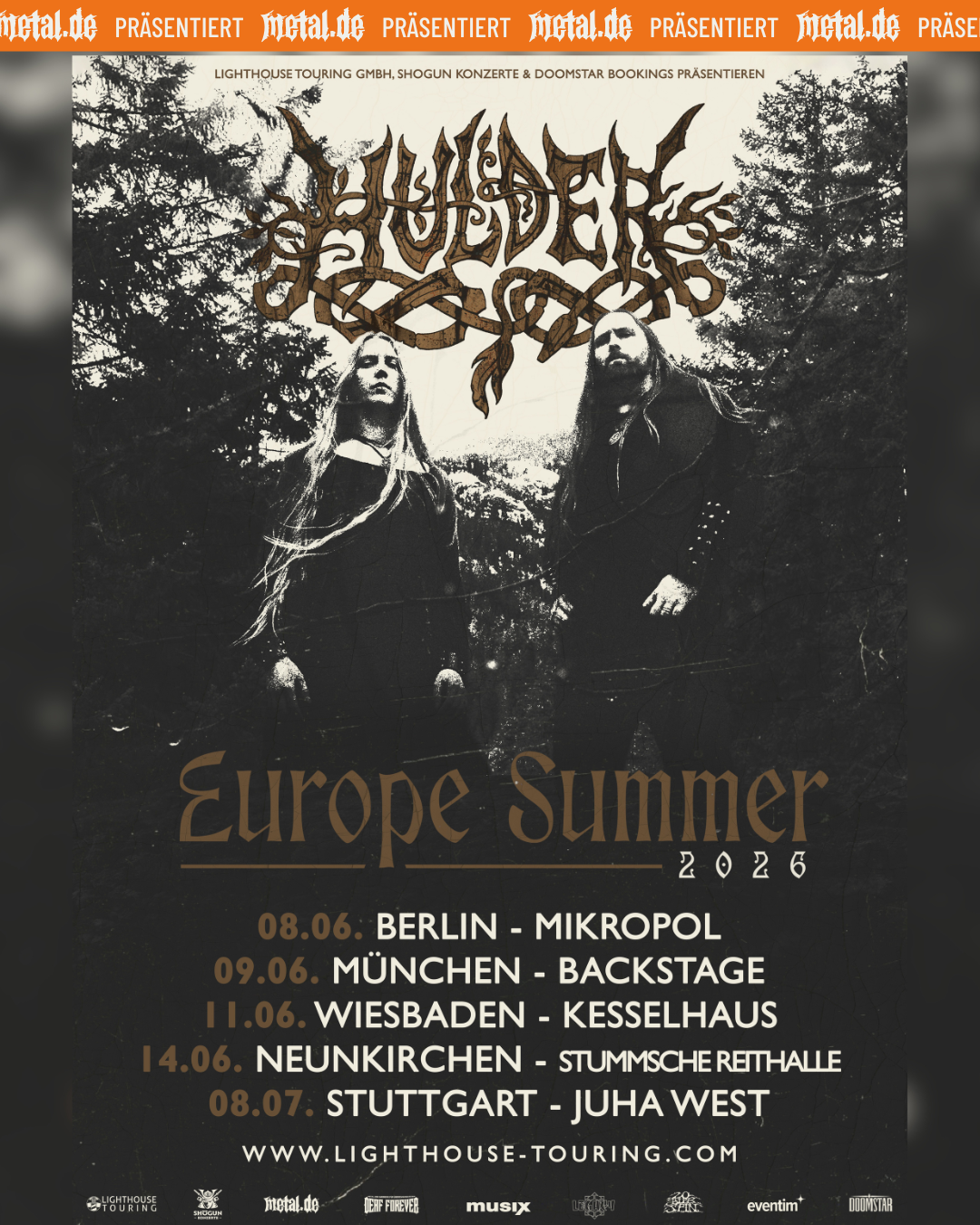 Mit einer einzigartigen Verbindung aus roher Intensität, düsterer Atmosphäre und archaischer Melodik hat sich HULDER in den vergangenen Jahren als eine der faszinierendsten Stimmen im modernen Underground etabliert.