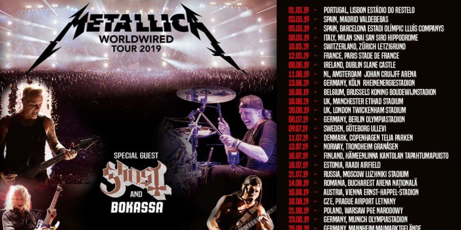 Metallica kehren auf ihrer „WorldWired“-Tour 2019 nach Deutschland zurück. Live erleben könnt ihr die Band um Frontmann James Hetfield auf den 4 Open-Air Konzerten in Köln, Berlin, München und Mannheim. Als Support sind dieses Mal Ghost und Bokassa mit dabei. Die Veranstaltung auf dem Mannheimer Maimarktgelände ist gleichzeitig der Abschluss einer 25 Konzerte umfassenden großen Europatour.